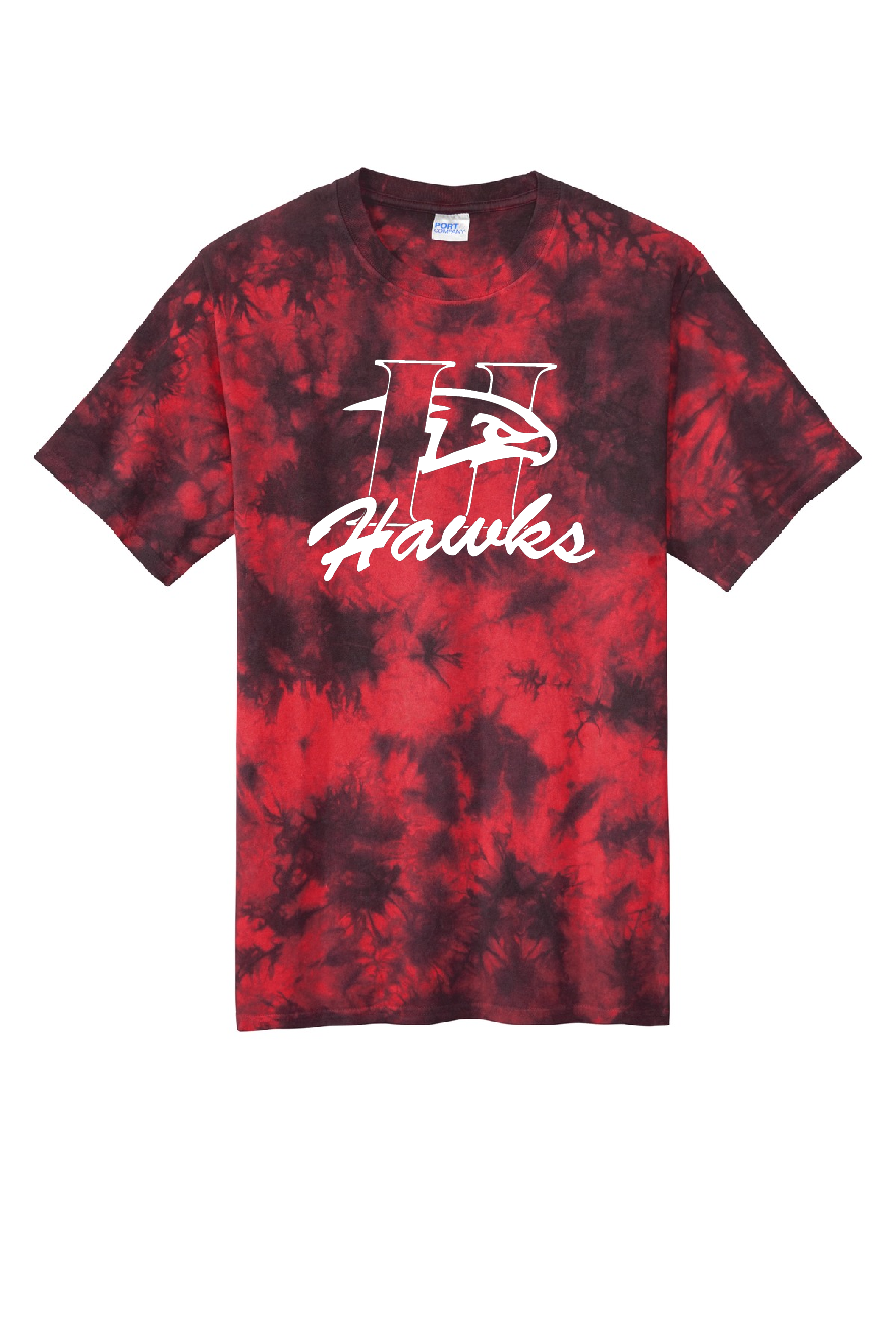 Cotton crystal tie dye t-shirt with Holley Alumni logo printed across front. Available in men's and youth cut.